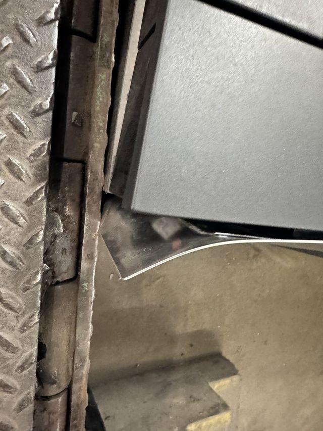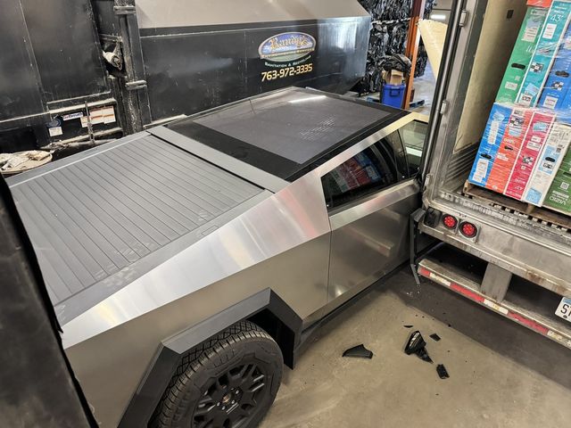 하지만 사이버트럭은 이미 진퇴양난의 상황에 놓여 있었다. 차량은 뒷벽에 고정돼 있었고, 뒷문 앞쪽 가장자리가 세미트럭에 의해 눌려 있었다. 이로 인해 뒷문이 찢어졌다.