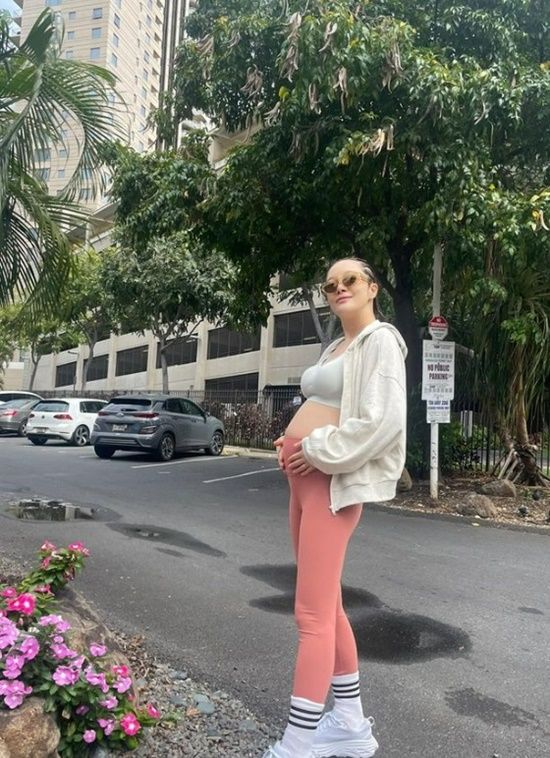 하와이 태교 여행을 사진으로는 누구보다 힙한 패션으로 개성을 자랑하고, 출산 후 56kg까지 늘어난 몸무게를 거침 없이 공개하며 "인생 역대 몸무게라 숨 쉬기도 힘들다"고 고백하기도 했다.