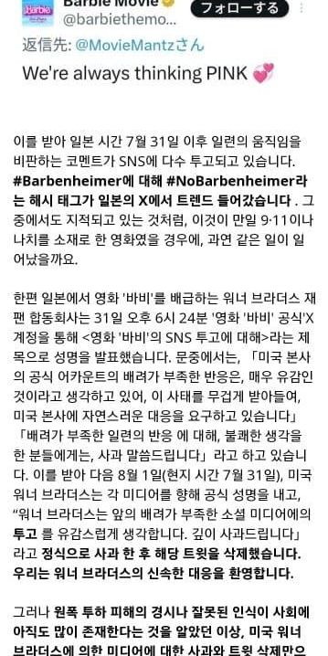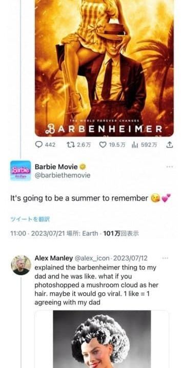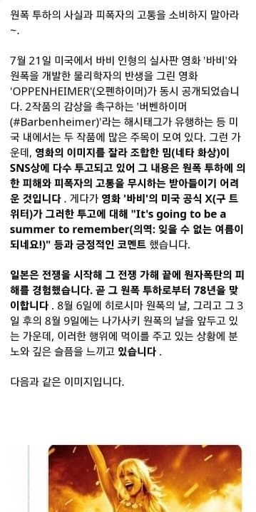 – 관련게시물 : 바벤하이머(바비+오펜하이머)에 발작 중인 그 나라 근황 ㅋㅋ