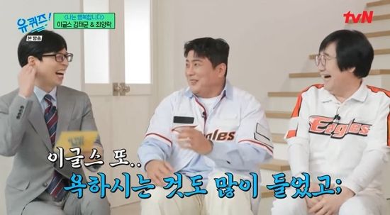 김태균은 "한화 이글스의 홍보대사를 하셨고 시구도 자주 오셔서 굉장히 친근하지만 다른 방송에서 이글스 욕하시는 것도 많이 들어서 너무 궁금했다"라며 너스레를 떨었다.