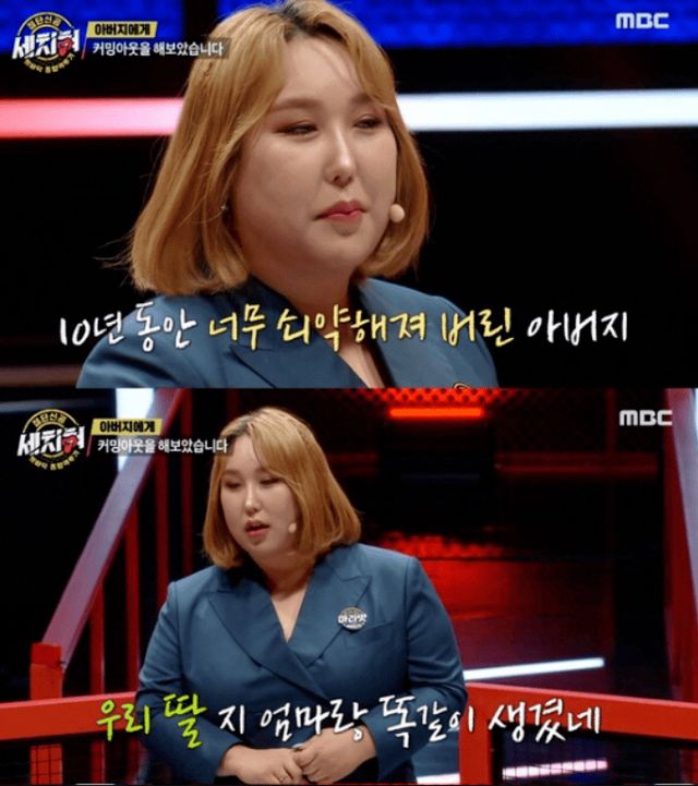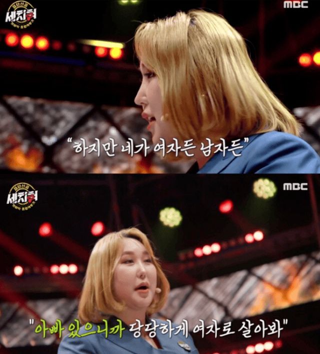 이어 "아버지가 '아빠가 지금 너를 받아들이는데 오래 걸리겠지만 네가 남자이든 여자이든 너는 내 새끼이기 때문에 지켜줄게 네게 오는 모든 비난을 아빠가 막아줄게 아빠 있으니까 당당하게 여자로 살아봐'라고 하시더라"고 말해 객석을 눈물바다로 만들었습니다.