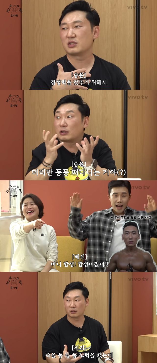 24일 유튜브 채널 'VIVO TV - 비보티비'에는 '헬친자 개그맨 세 명이 모이면?, 개 세 모 EP.34'라는 제목의 영상이 업로드됐고, 김혜선, 이종훈, 이승윤이 게스트로 출연했다.