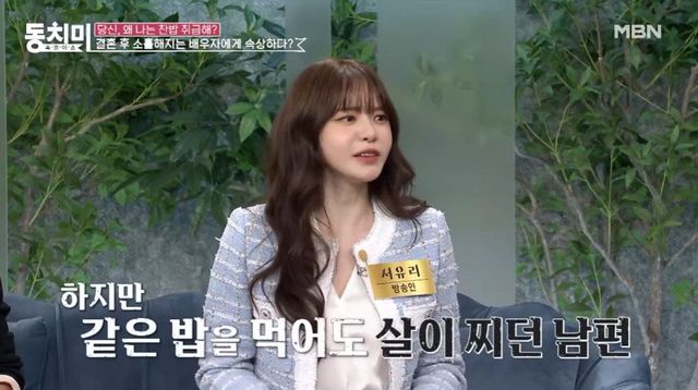 서유리는 24일 공개된 MBN ‘속풀이쇼 동치미’ 선공개 영상에서 “결혼 후 나는 몸무게 변화가 없었다. 이상하게 같은 밥을 먹는데도 해가 갈수록 임신을 누가 한 건지, 분명히 우리 사이에는 아이가 없는데”라면서 전 남편이 결혼 후 체중이 증가했다고 밝혔다.