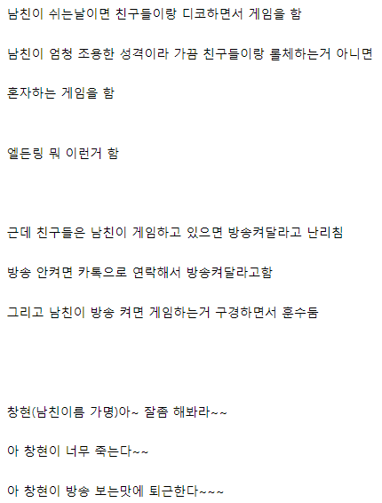 저 무리에서 창현이 없으면 애들 대화 빈도수 반토막날것같은데
