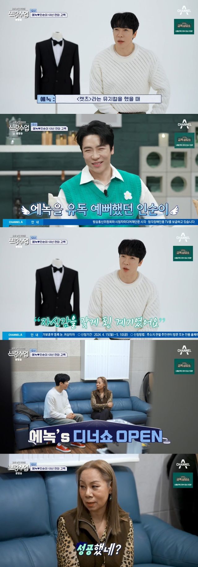 24일 방송된 채널A '요즘 남자 라이프 - 신랑수업'(이하 '신랑수업')에서는 에녹이 인순이를 찾아간 장면이 공개됐다.