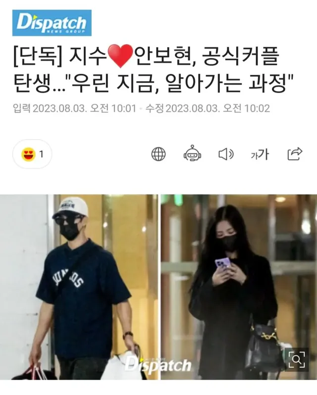 두 사람의 측근은 ‘디스패치’에 “지수는 ‘월드스타’ 걸그룹이다. 주변 관심이 집중된다”면서 “데이트 장소가 한정적일 수밖에 없다”고 전했다.