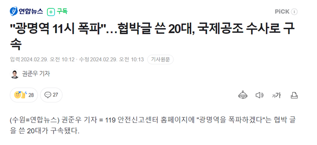 -> 수사결과 국내거주 20대가 VPN 써서 글 올림