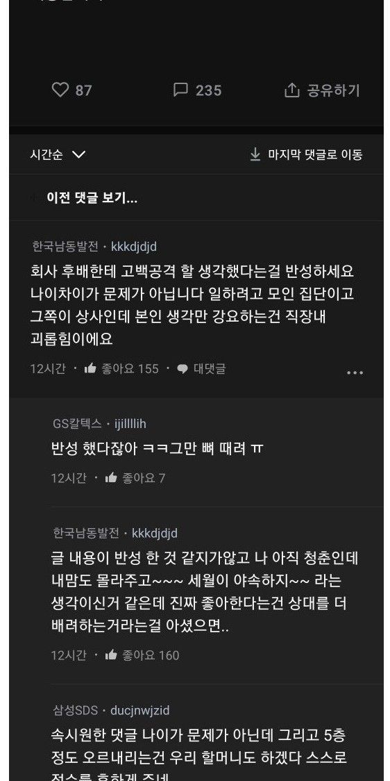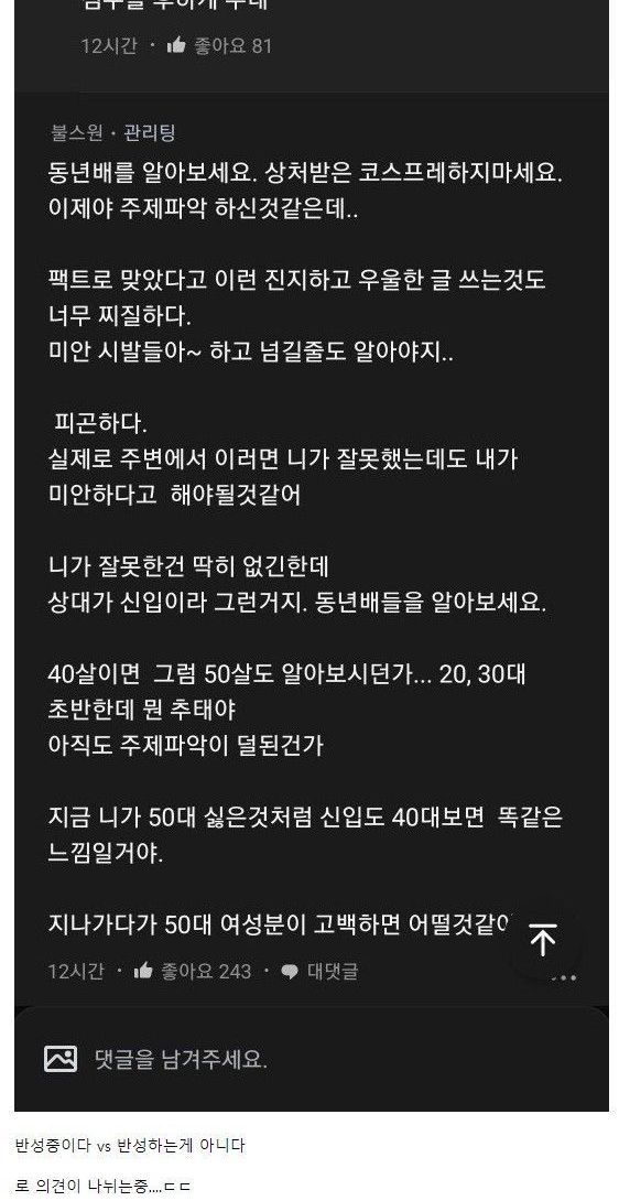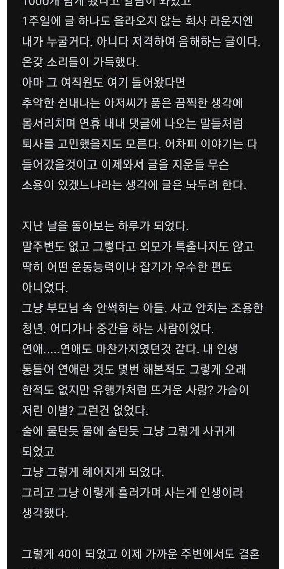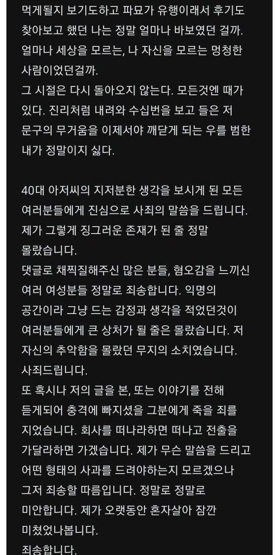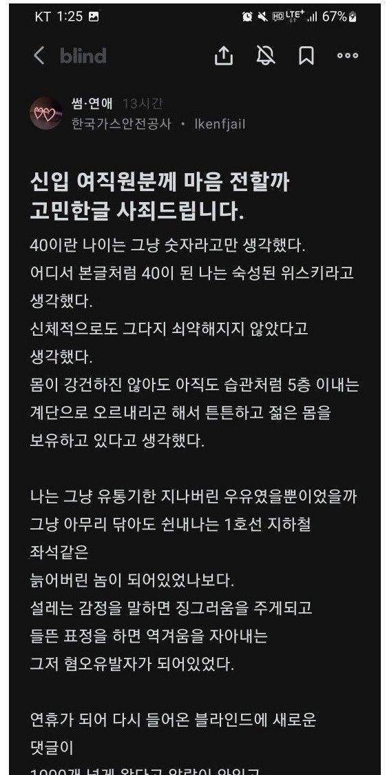 20대 신입에게 고백 후 반성글 쓴 40대 직장인