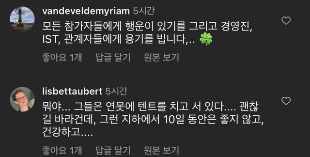인스타 둘러보다가 벨기에대표단 글봤는데 저런환경에서 텐트를 친다하니..