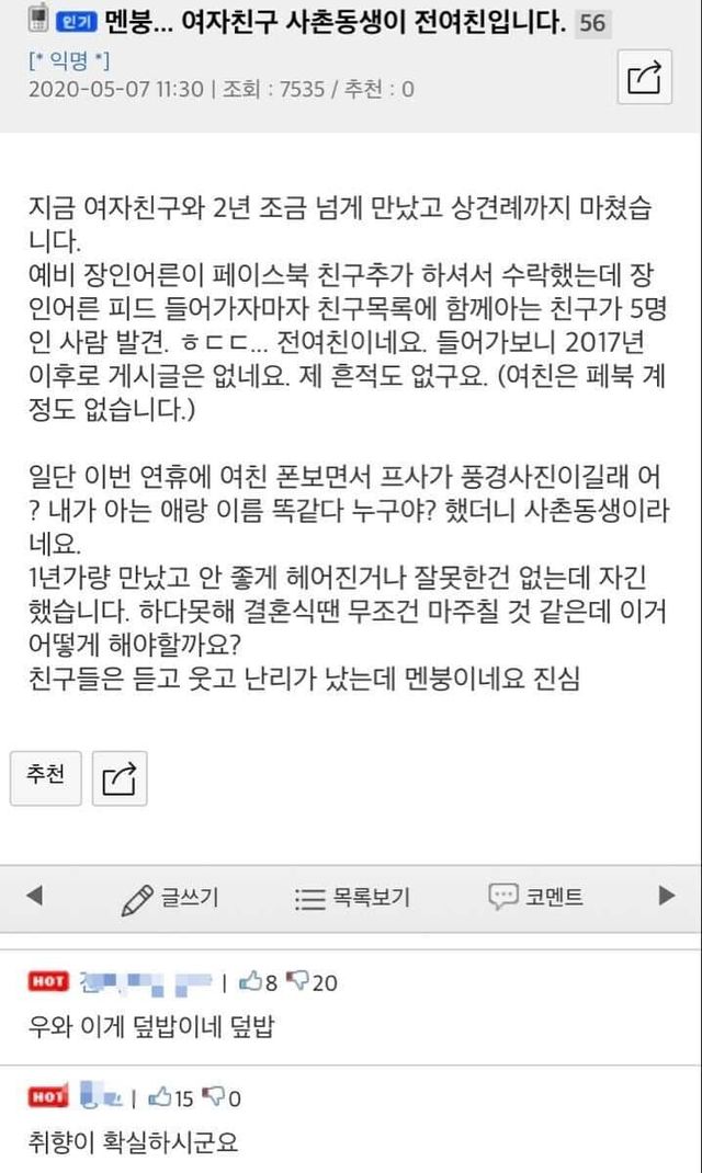 결혼 예정인 여친 사촌동생이 전여친