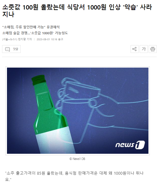 이제 소매점에서도 자율적으로 할인 가능해져서 할인가격으로 소주 팔 수 있음 ㅋㅋㅋ