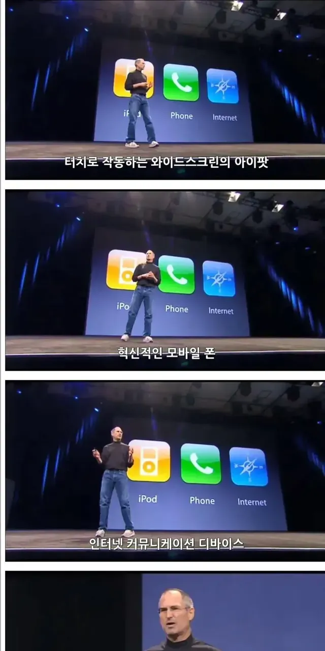 애플이 폰을 재발명 했다라는 도발적인 문구를 보여주며 아이폰을 첫 공개하는 잡스