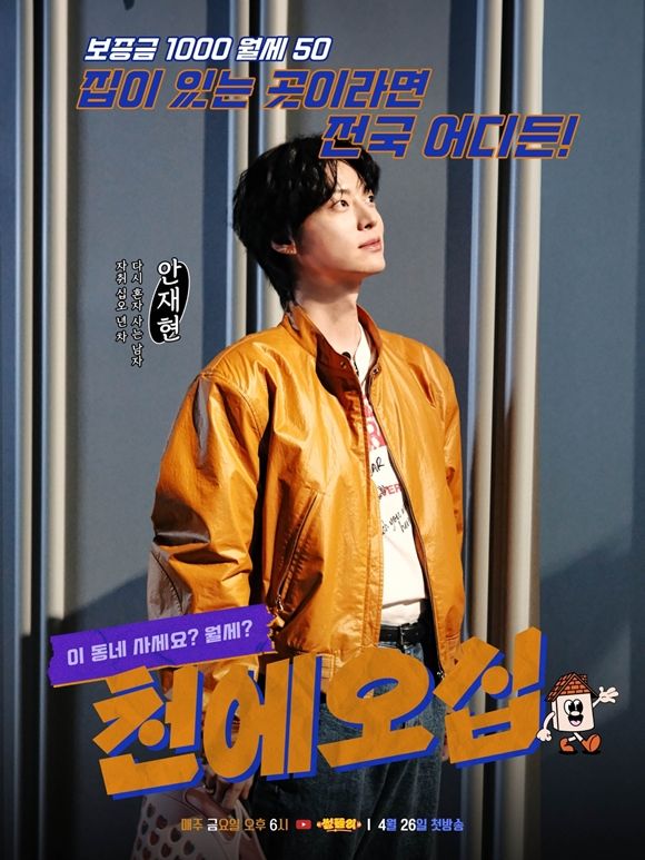 소속사 HB엔터테인먼트는 25일 "안재현이 오는 26일 첫 공개되는 유튜브 채널 '썰플리' 웹 예능프로그램 '천에오십' 단독 호스트를 맡았다"고 밝히며 포스터를 공개했다. '집이 있는 곳이라면 전국 어디든'이라는 문구 아래 안재현의 반짝이는 눈빛이 호기심을 더한다.