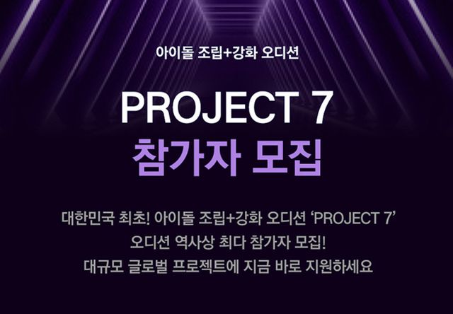한편 2024년 대한민국을 뒤흔들 신개념 아이돌 조립강화 오디션 ‘PROJECT 7’은 올 하반기 JTBC 방영을 목표로 지원자를 모집 중이다. 소속, 경력, 나이, 국적 등의 제한 없이 오로지 ‘톱티어 아이돌을 꿈꾸는 남자’라면 누구나 지원 가능하며 공식 홈페이지에서 참가신청서를 확인할 수 있다.