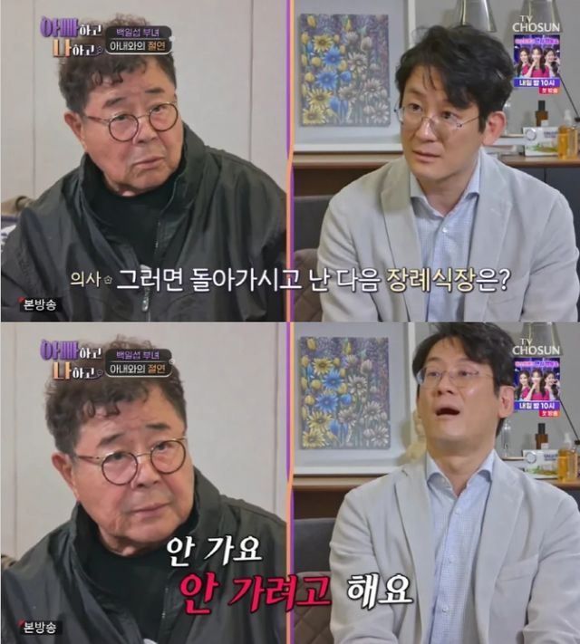 의사는 조심스레 "아내의 마지막을 생각해 보신 적 있나"라고 물었고 백일섭은 "생각 안 한다. 졸혼 후 아들과 딸이 있으니 알아서 하겠지. 장례식장도 안 가려고 한다. 난 정을 떼고 나왔다"라며 단호하게 말했습니다.