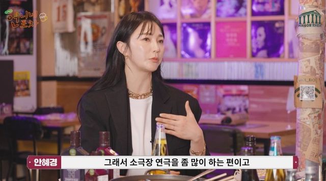 배우 안혜경이 솔직하고 털털한 입담을 유튜브 채널 메종레아(언니네 포차)에 출연했다.