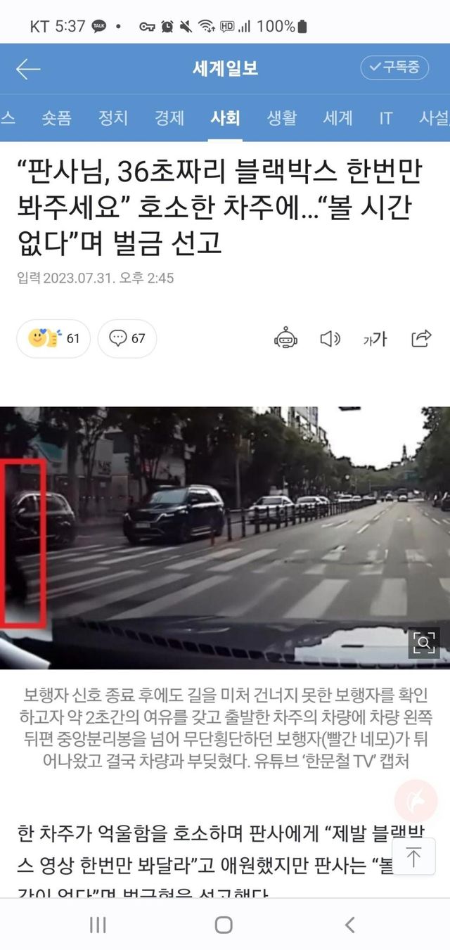 => 블박 36초짜리 봐달라고 했는데 판사 왈 “볼 시간 없다” 이러고 땡침