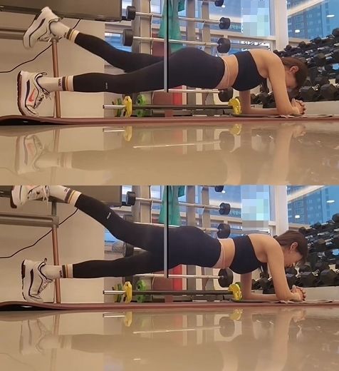 영상 속 정가은은 플랭크 자세를 한 채로 다리를 위아래로 움직이며 운동하고 있다.