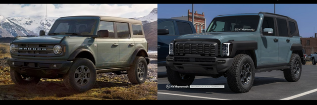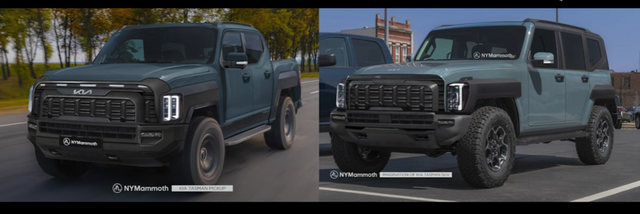 | ▲ 기아 타스만 SUV 예상 렌더링과 브롱코 <출처=뉴욕맘모스> |