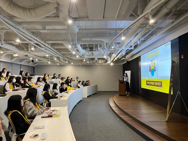 지난 24일 서울 구로구 넷마블 본사에서 열린 '2024 넷마블견학프로그램'에 참여한 경북여자상업고등학교 학생들이 강연을 듣고 있다. /넷마블문화재단