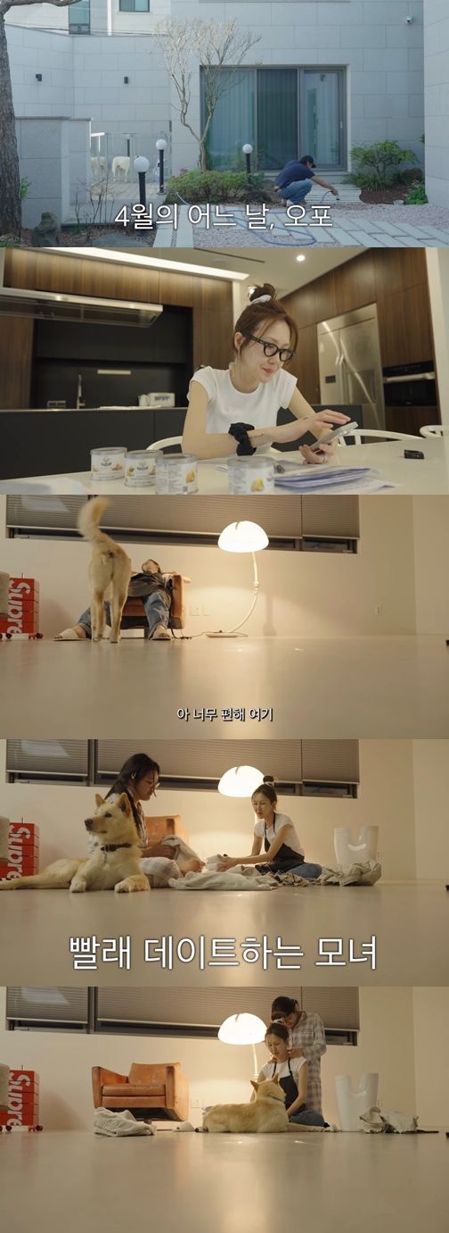 엄지온 양은 엄마 윤혜진에게 빨래 접는 법을 배우며 빨래 데이트를 즐겼다.