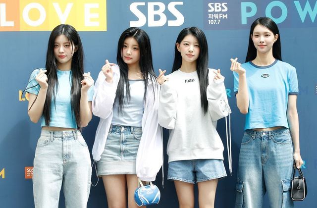 걸그룹 아일릿 민주(왼쪽부터)와 모카, 원희, 윤아가 라디오 '두시 컬투쇼'를 위해 지난 24일 서울 양천구 목동 SBS에 도착해 인사를 하고 있다. /뉴스1