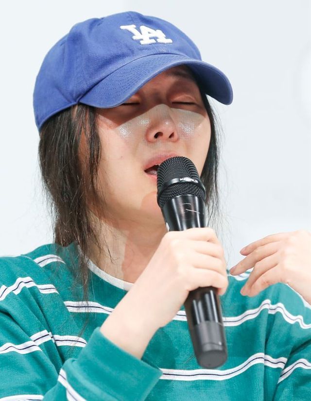 그룹 뉴진스의 소속사 어도어 민희진 대표가 25일 서울 서초구 한국컨퍼런스센터에서 하이브 경영권 탈취 시도와 관련한 배임 의혹에 긴급기자회견을 갖고 울먹이며 입장을 밝히고 있다. /뉴스1