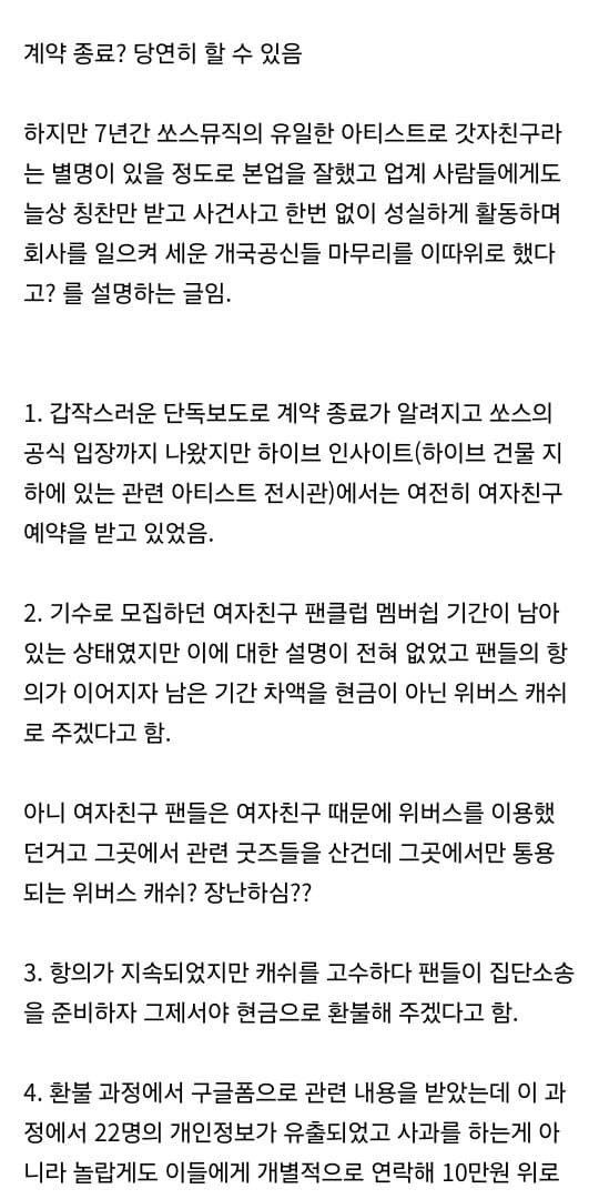 펌)쏘스뮤직이 여자친구와의 계약 종료 당시 했던 짓들은 대체 무엇일까?