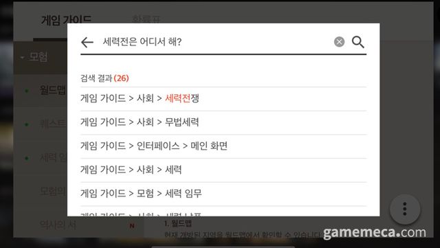 ▲ 아스달 연대기: 세 개의 세력 '모험의 서' 검색 예시 (사진: 게임메카 촬영)