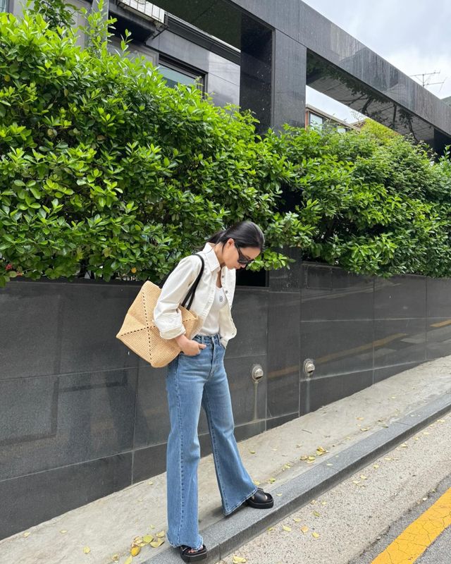 임지연은 와이드한 핏의 청바지와 흰티 이너, 흰 셔츠를 매치해 편안하면서도 스타일리시한 패션을 선보였다.