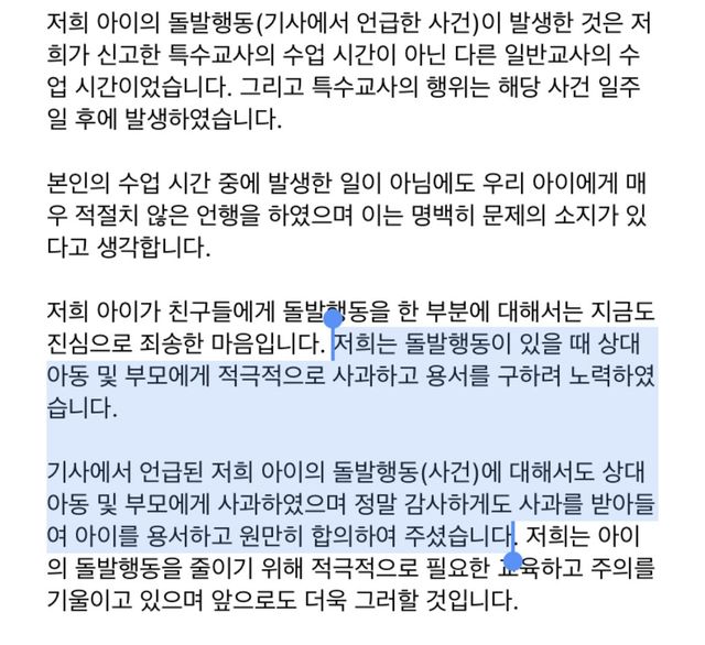 입장문에선 피해 여학생과 부모에게 적극적으로