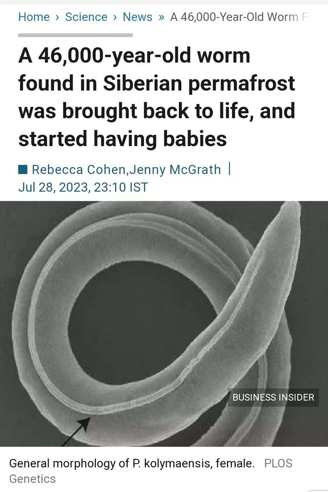 예측하기론 대략 50,000년 동안 그 속에서 휴면 상태로 생존해있었던 것으로 추정