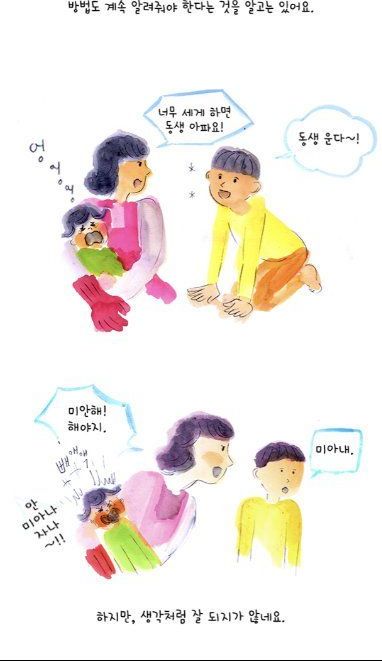 하지마, 안돼, 너 안 때린다고 약속할따까지 동생이랑 못놀아