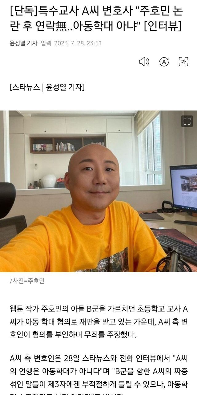 “주호민 논란 후 연락無..아동학대 아냐” …