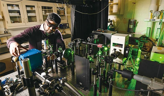 미 로체스터대의 랑가 다이어스 교수가 초전도체 실험을 하고 있는 모습