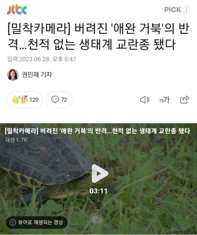 얘네가 토종 물고기를 잡아먹으면서 생태계를 교란해 요즘 난리라고 함