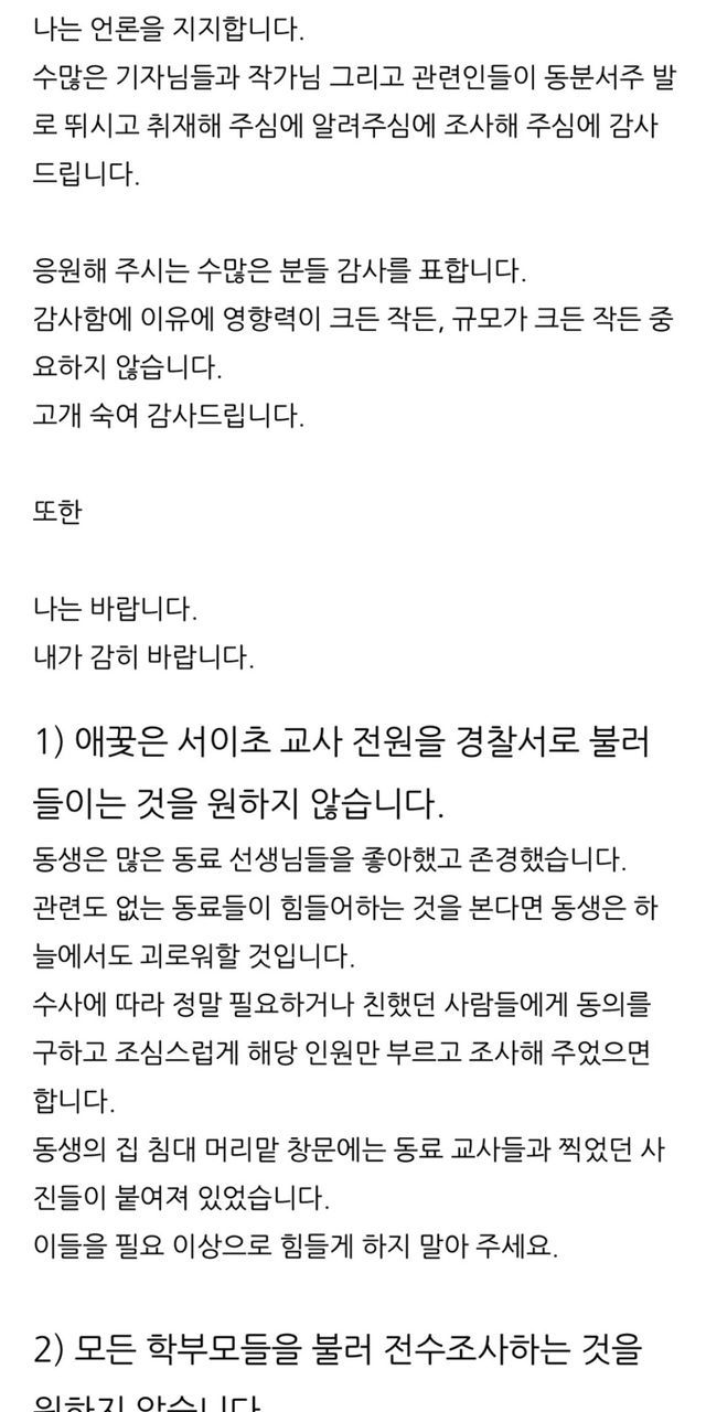 서이초 교사의 일기장과 기타 정보를 최초보도한 뉴데일리 기자는 유가족이 허위사실에 대해 사과해달라, 어떤 경로로 자료를 받은건지 의문점들에 답해달라고 했으나 무응답함..