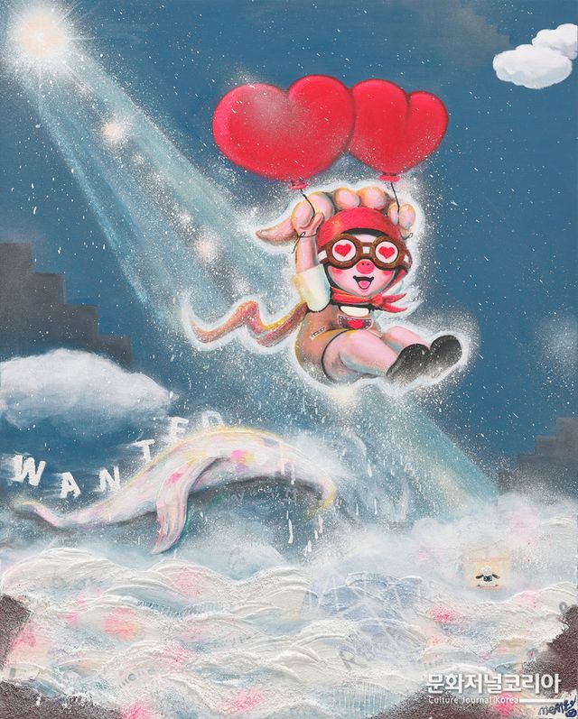 The character of Object Pigme embodies the frailty of the artist and modern individuals within the confines of contemporary society. Born as a pig lacking self-esteem, Object Pigme, always aware of its surroundings, sports elongated ears akin to a rabbit and a timid, small mouth. Heart goggles symbolize a beacon illuminating a paradise of happiness for Pigme, flying with fervent energy, dreaming of joy. Through Pigme's journey to rediscover lost self-esteem, the character returns to a state of pure innocence devoid of self-consciousness, constructing a surreal utopia for all modern adults in pursuit of their dreams.