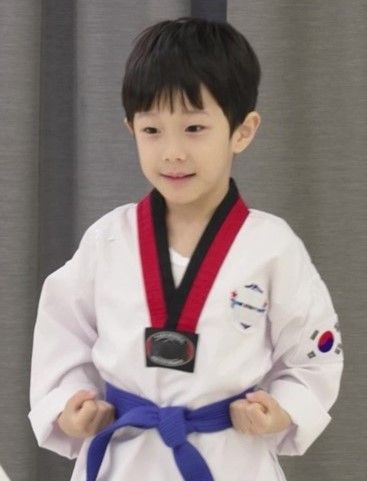 지난 방송에서 태권도 띠 색이 '파초 띠'였던 재율이가 노력 끝에 '파란 띠'로 한 단계 승격한 뒤 한층 늠름해진 모습을 보여주는 것.