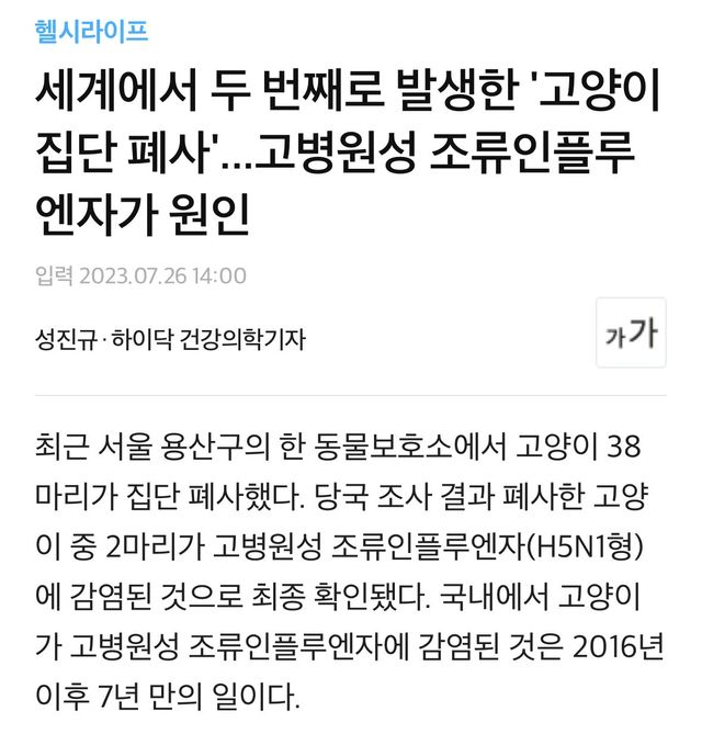 조류인플루엔자 돌연변이 바이러스가 포유류에게 전염 후 집단폐사된 사례라