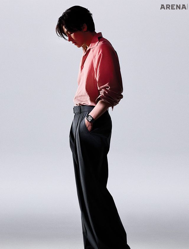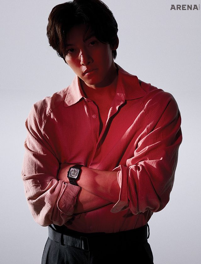 아방가르드한 일본 패션 디자이너 쿠니히코 모리나가(Kunihiko Morinaga)와의 협업으로 탄생한 스페셜 에디션으로 조명에 따라 투명하거나 불투명하게 변화하는 특수 글라스를 접목해 스켈레톤 처리된 오토매틱 무브먼트를 감추기도 하고 드러내기도 하는 흥미로운 모델. 폴리싱 처리된 블랙 하이테크 세라믹 소재의 모노블록 케이스와 크라운, 브레이슬릿의 조화가 멋스러운 38×44mm 워치로 80시간 파워 리저브를 제공하는 오토매틱 무브먼트인 라도 칼리버 R734를 탑재한 라도×트루 스퀘어 쿠니히코 모리나가 워치 386만원 라도 제품. <br><br>핑크 컬러 셔츠는 다이아몬드 레이라, 슈즈는 토즈, 다크 그레이 컬러 팬츠와 벨트는 모두 스타일리스트 소장품.