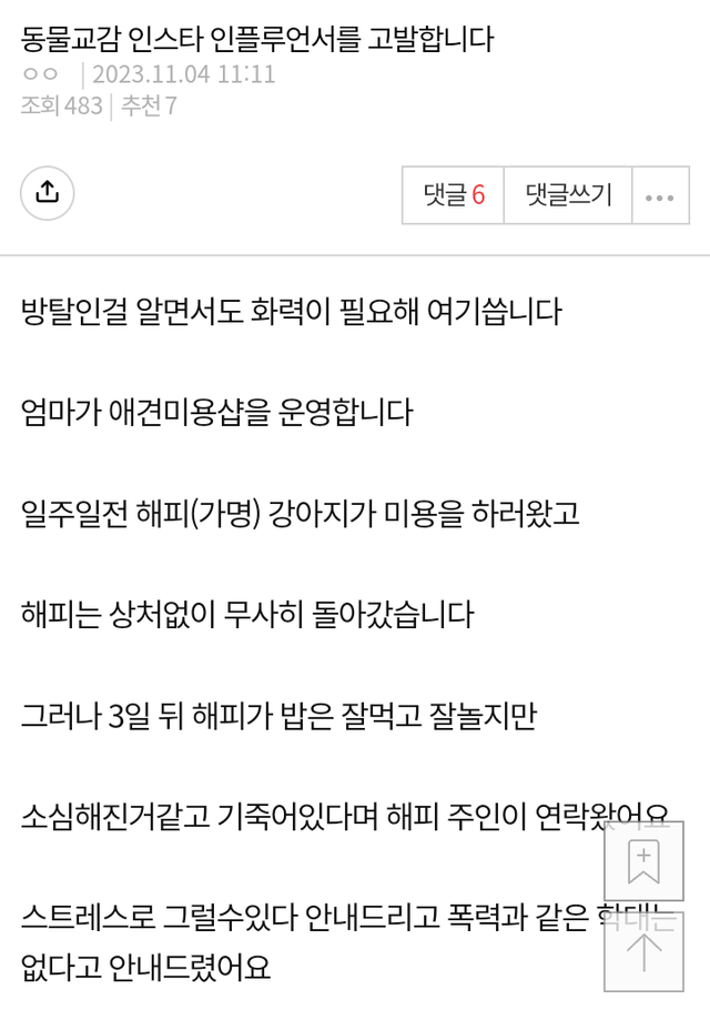 3. 애니멀 커뮤니케이터 : 애견미용사가 소리지르고 화내서 강아지가 우울해한다