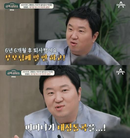 박세진은 ADHD로 인한 잦은 지각과 직장 내 부적응으로 7개월 만에 반강제 퇴사를 당했다고 털어놨다. 그는 "당시 엄마는 위로는커녕 '날 위해서라도 버텼어야지' 하며 드러누웠다"고 폭로했다. 그는 "그때 이후 엄마에게 입을 닫게 됐다"며 속마음을 털어놨다.