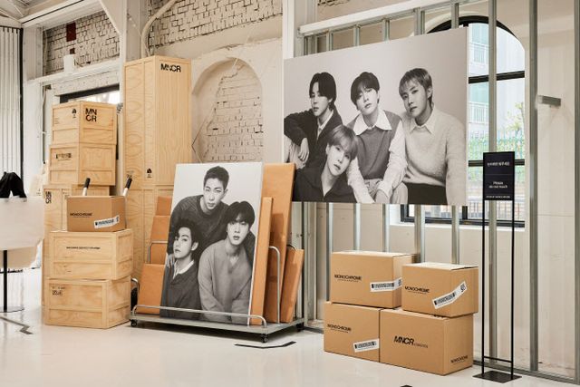그룹 방탄소년단 팝업 ‘BTS POP-UP : MONOCHROME’(이하 모노크롬)이 26일 오전 11시 서울 성수동에서 정식 오픈했다. 팝업 스토어 주변에는 보라색 아이템을 착용한 아미(팬클럽명)들이 몰려들기 시작했다. 친구와 함께 방문한 소녀팬들, 연차를 내고 온 직장인, 바다 건너 미국과 일본에서 온 해외팬들까지 국적도 성별도 다채로웠다.
