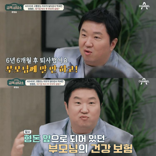 방송인 정형돈이 대기업 퇴사 후 모친이 충격을 받았다고 밝혔다.