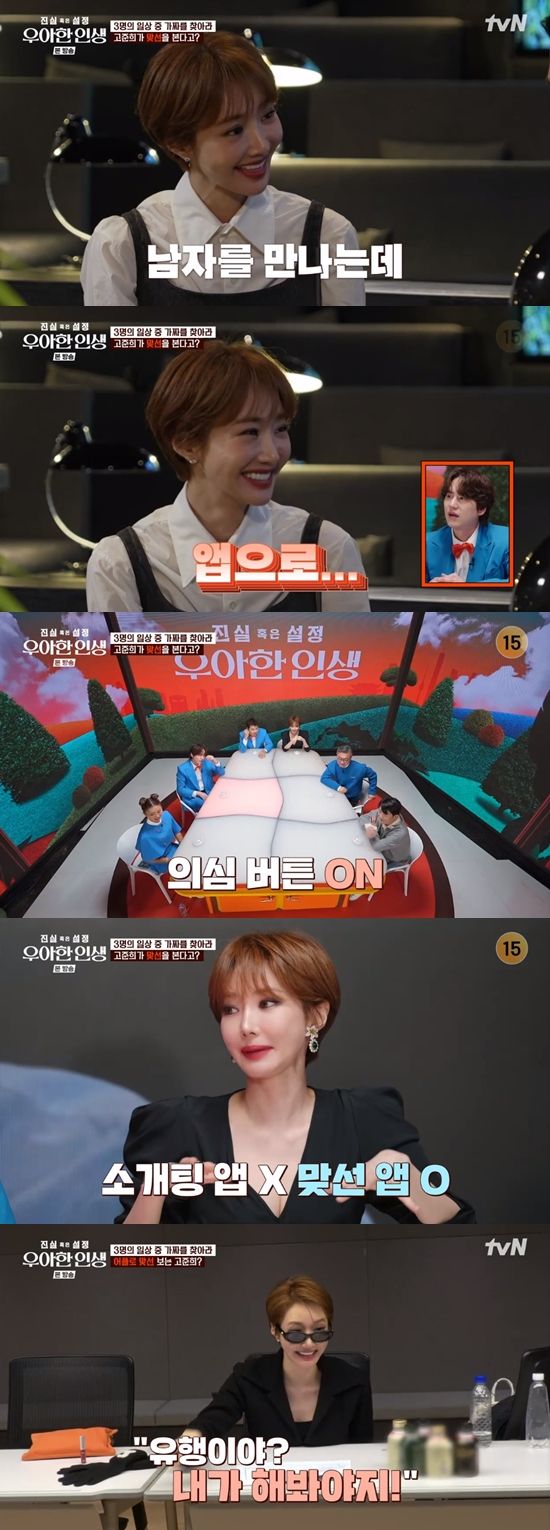 고준희는 "맞선 앱이 친구들 사이에 유행이다. 유행이라는 소리에 해 보고 싶었다. 돈도 냈다. 가진 게 돈밖에 없다"며 맞선 앱을 통해 상대를 만나게 됐음을 고백했다.