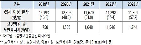 국내 노인 인구 증가에 따라 결핵환자 중 고령환자 발생 비율이 높아지고, 요양병원, 요양원 입소자 중에도 결핵환자가 지속적으로 발생하고 있다.
