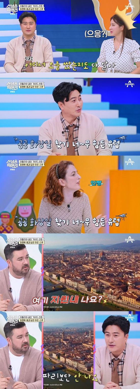 "여기 지린내 나냐"는 샘 해밍턴의 질문에 안정환은 "파리보단 안 난다"며 "화장실을 가려면 무조건 카페에 가야 한다"고 불만을 제기했다.