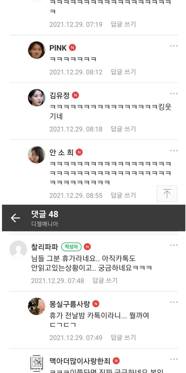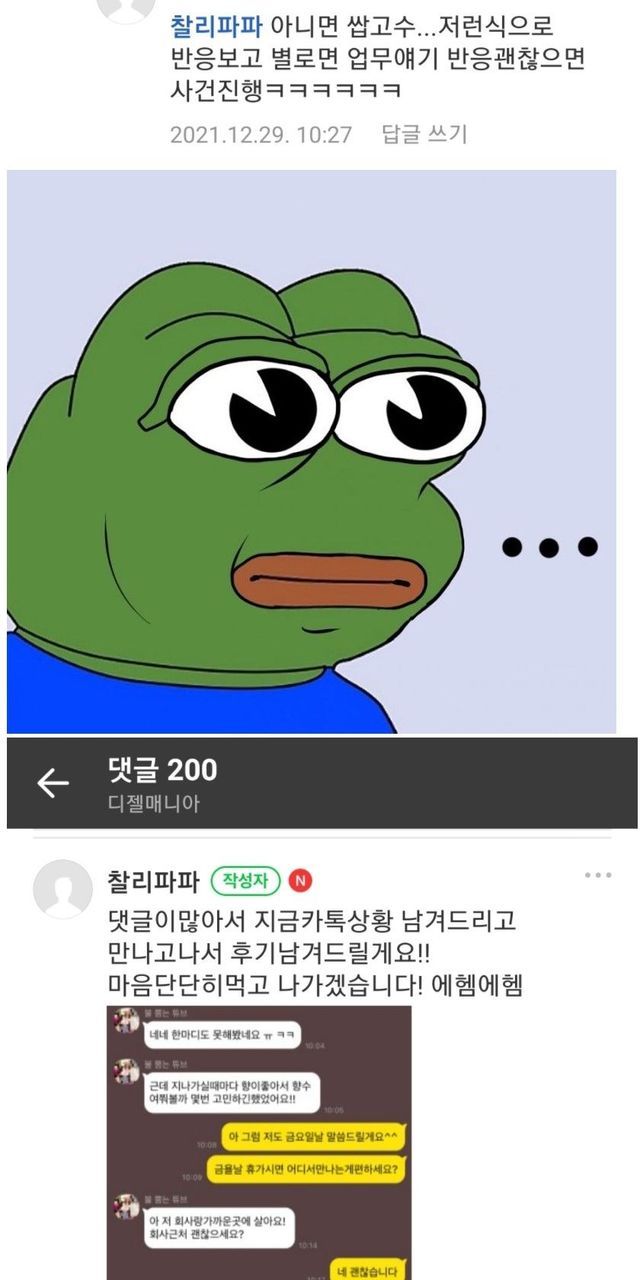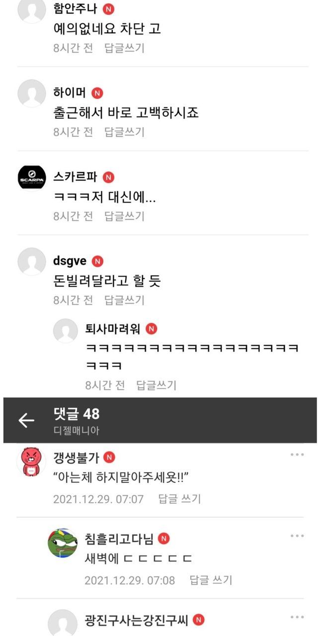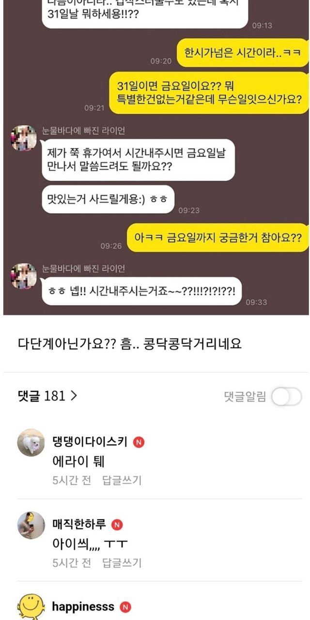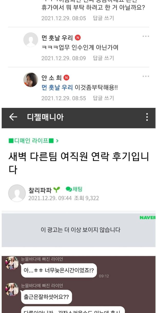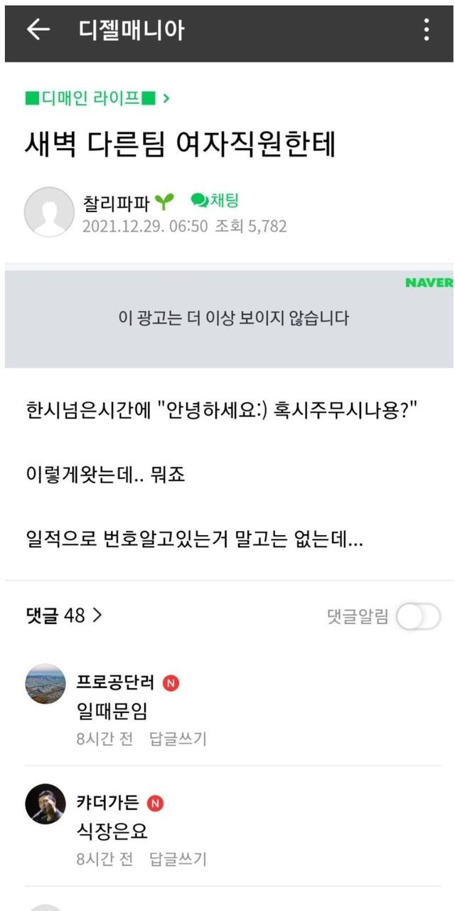 새벽에 다른 팀 여직원한테 연락이 온 디매인..