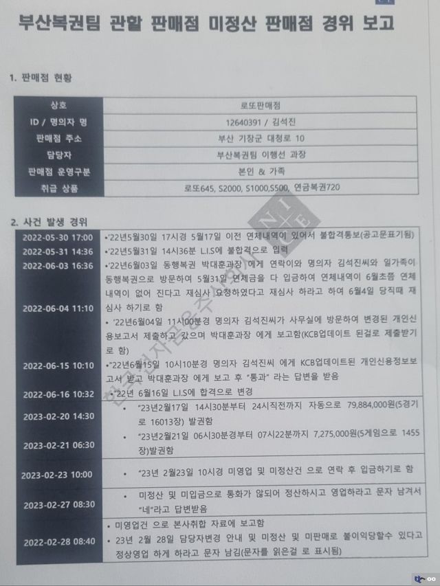 무자격자에게 복권판매점을 내어준 비리가 발각될까봐 청구를 하고 있지 못하고